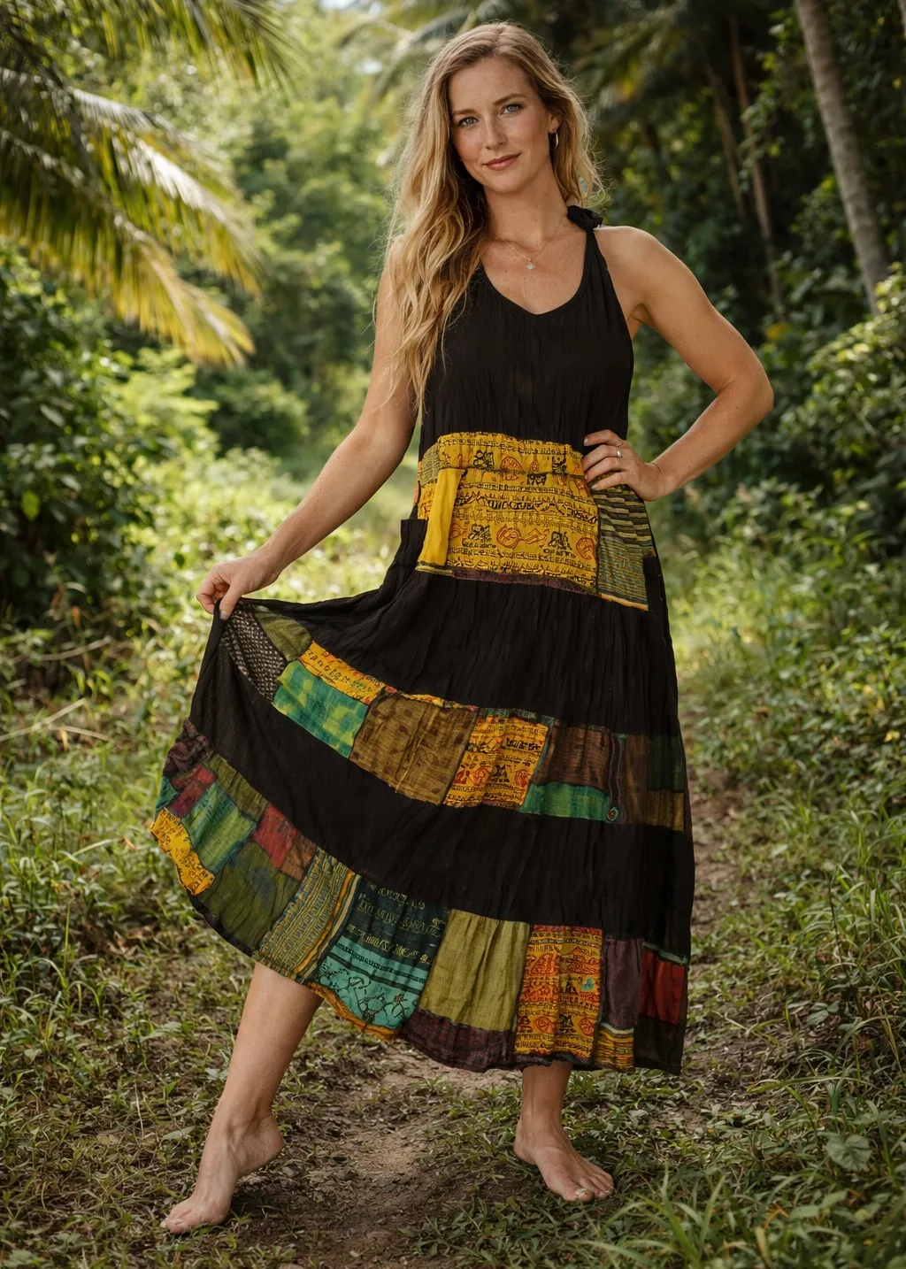 Alternatieve patchwork jurk, voor een festival of gewoon voor elke dag. Omdat deze jurk bij jou past zul je hem met veel plezier elke dag dragen.