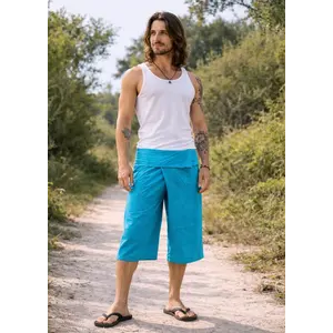 Deze aquanblauwe fishermanspants van rayon is dé perfecte broek voor warme dagen. De dunne, luchtige stof voelt heerlijk zacht aan op de huid en valt soepel om het lichaam. Dankzij het slimme wikkelmodel is de broek eenvoudig op maat te dragen en geschikt voor vrijwel ieder lichaamstype. Ideaal voor yoga, reizen, stranddagen of gewoon lekker ontspannen. De opvallende rode kleur geeft een speelse, energieke look en past perfect binnen een alternatieve stijl. Unisex en super comfortabel, eenmaal gedragen wil je niets anders meer.