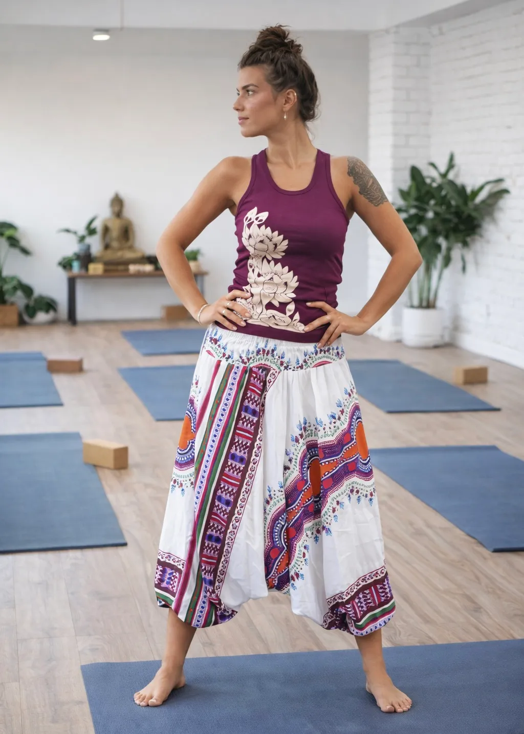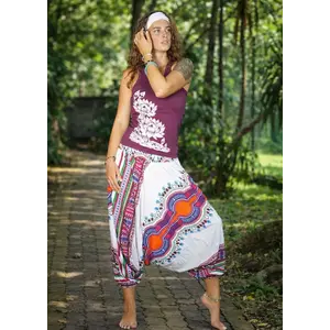 Deze harembroek is super hip en trendy in de beachclub, cool op het strand, urban in de stad, en chill tijdens de yogales. Deze broek kan ook over de borst gedragen worden, zodat het een jumpsuit wordt.