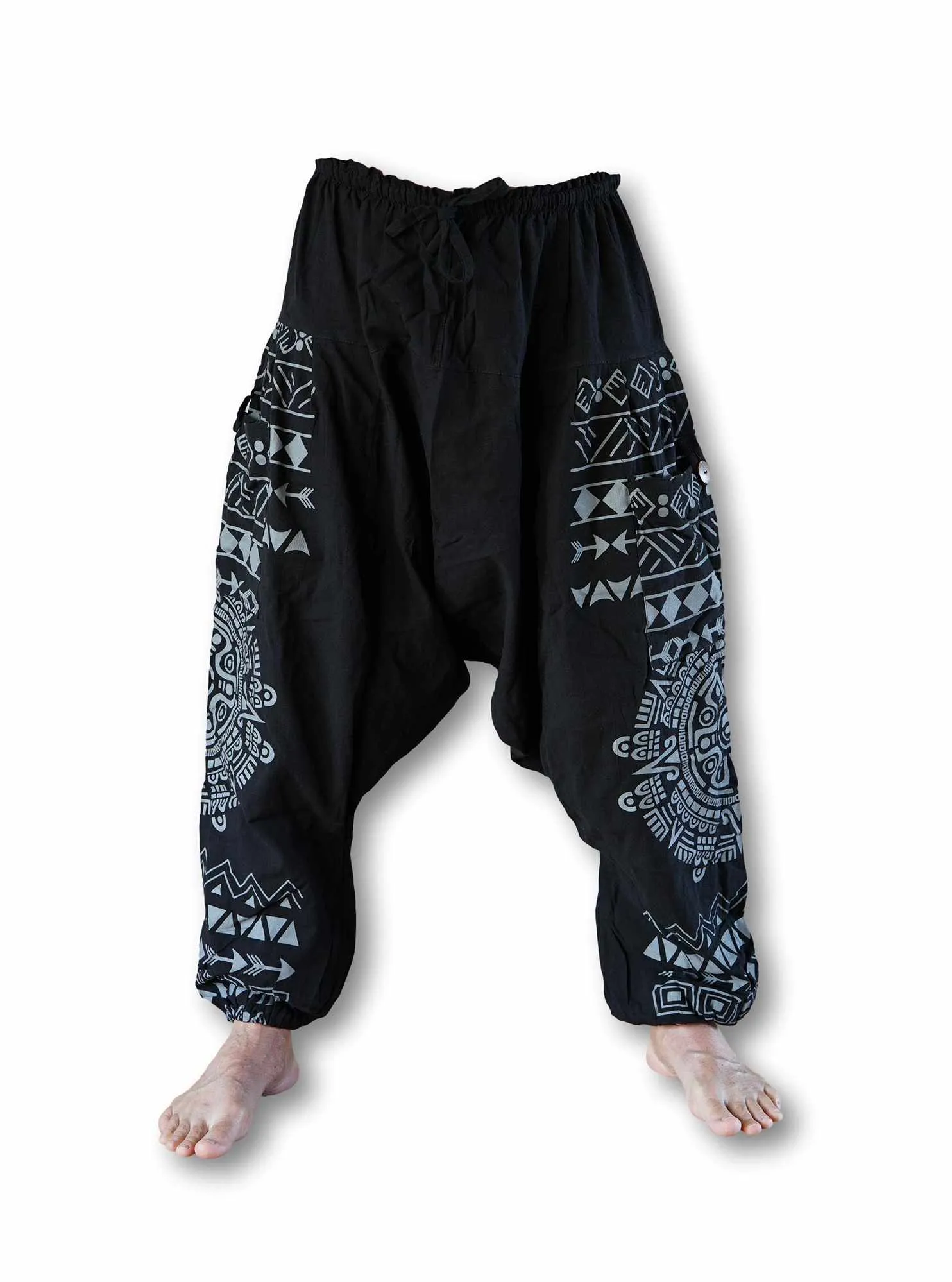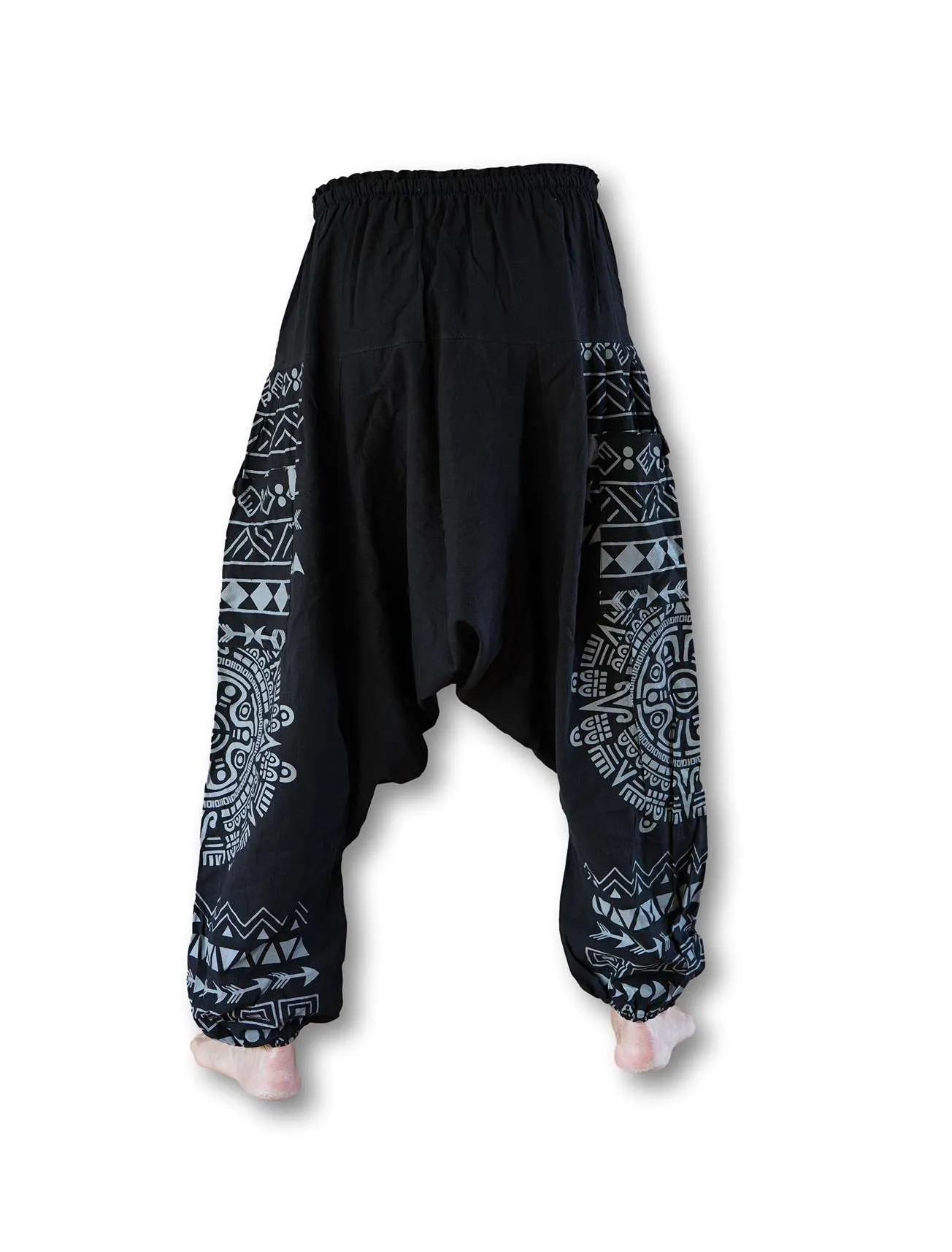 Deze zwarte harembroek met een prachtige tribal print straalt een unieke, bohemien vibe uit en laten zien dat je niet bang bent om je eigen stijl te volgen.