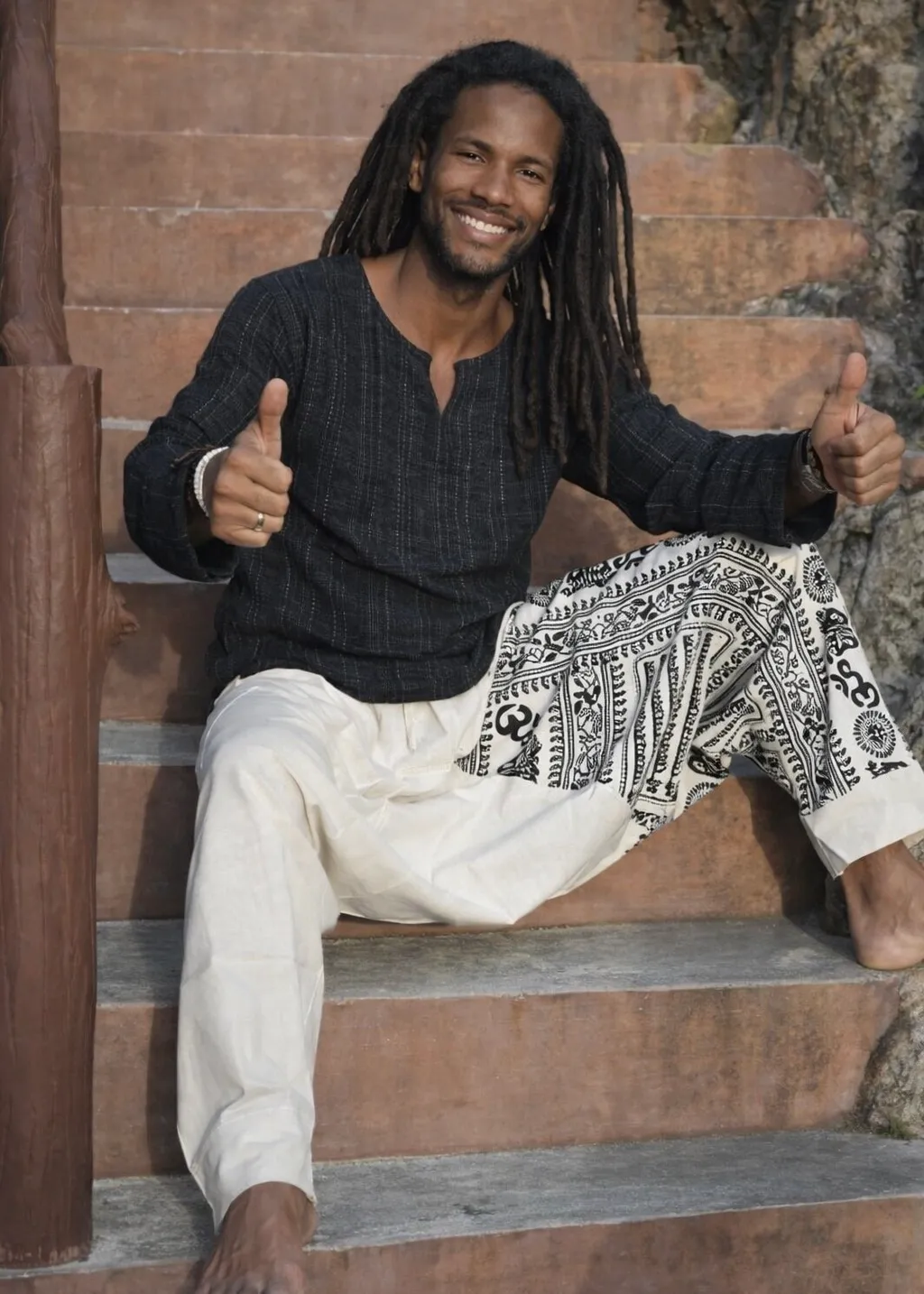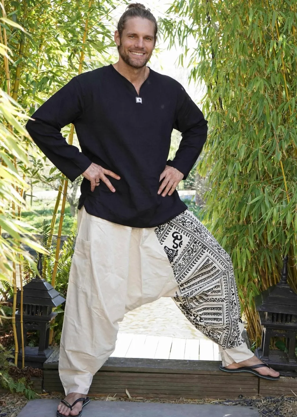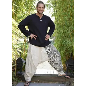 Te gekke gebroken witte harembroek met Ohm print. Draagt super comfy.