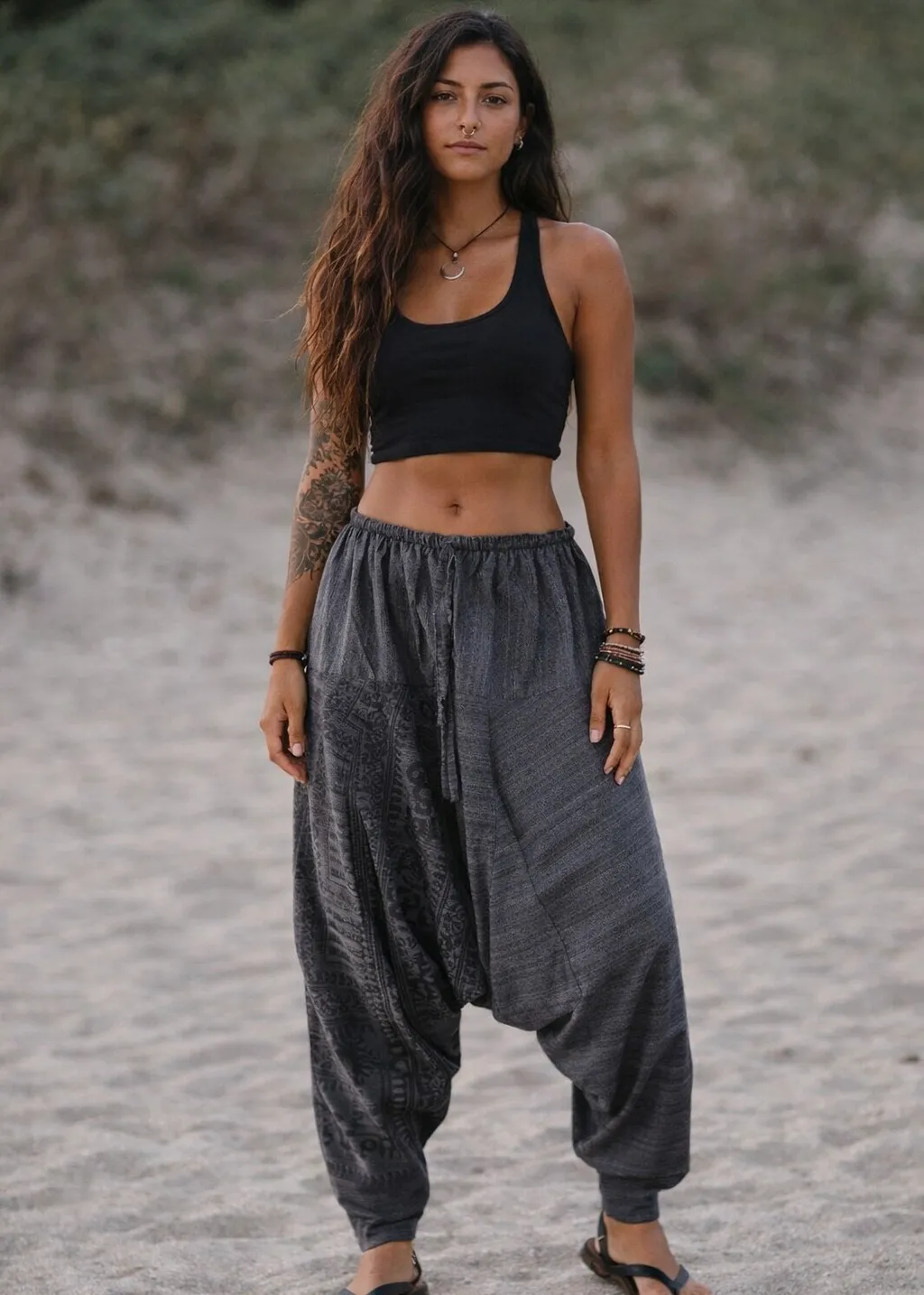 Deze antracietgrijze harembroek met ohm print is perfect als je comfort wilt combineren met een spirituele uitstraling. De broek is gemaakt van 100% katoen en na 1 keer wassen zo zacht dat de broek super comfortabel draagt. De donker gekleurde harembroek heeft een elastische band, waardoor hij altijd prettig zit en makkelijk past.