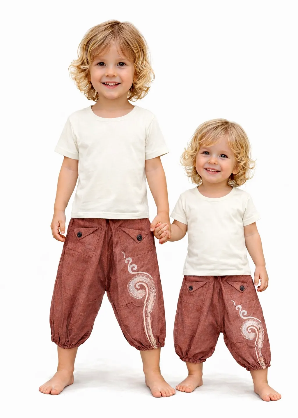 Dit terracotta harembroekje met unaloom print is een speelse en comfortabele keuze voor actieve kids. De elastische tailleband zorgt ervoor dat het broekje makkelijk aan en uit gaat én mooi meegroeit, waardoor je er extra lang plezier van hebt. De cocoshouten knopen geven een natuurlijke, unieke uitstraling die perfect past bij alternatieve kinderkleding. Ideaal voor spelen, ontdekken en ontspannen, zowel binnen als buiten. Combineer het broekje met een basic shirt voor een complete, relaxte look. Geschikt voor jongens en meisjes en een duurzame must-have in elke kindergarderobe.