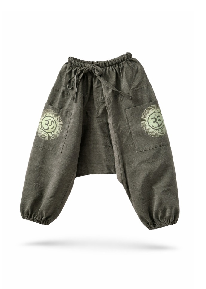 Dit legergroene harembroekje met lichtgele Ohm opdruk is perfect voor kids die vrij willen bewegen en hun eigen stijl hebben. Gemaakt van zacht katoen en voorzien van een elastische tailleband, waardoor het broekje makkelijk meegroeit en lang gedragen kan worden. De subtiele Ohm print geeft een spirituele, alternatieve uitstraling zonder te overheersen. Ideaal voor spelen, ontspannen en avonturen beleven. Combineer eenvoudig met een basic shirt voor een comfortabele en stoere look. Geschikt voor jongens en meisjes en een duurzame keuze binnen alternatieve kinderkleding.