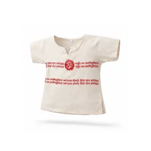 Dit off-white kinder shirt met subtiele Ohm print is perfect voor kids die zich vrij willen bewegen en hun eigen stijl hebben. Gemaakt van zacht en comfortabel katoen, ideaal voor spelen, ontspannen of op vakantie. De spirituele Ohm print geeft het shirt een unieke, alternatieve uitstraling zonder te overheersen. Combineer dit shirt moeiteloos met een harembroekje of shorts voor een complete, relaxte look. Geschikt voor jongens en meisjes die houden van comfortabele en bijzondere kinderkleding.