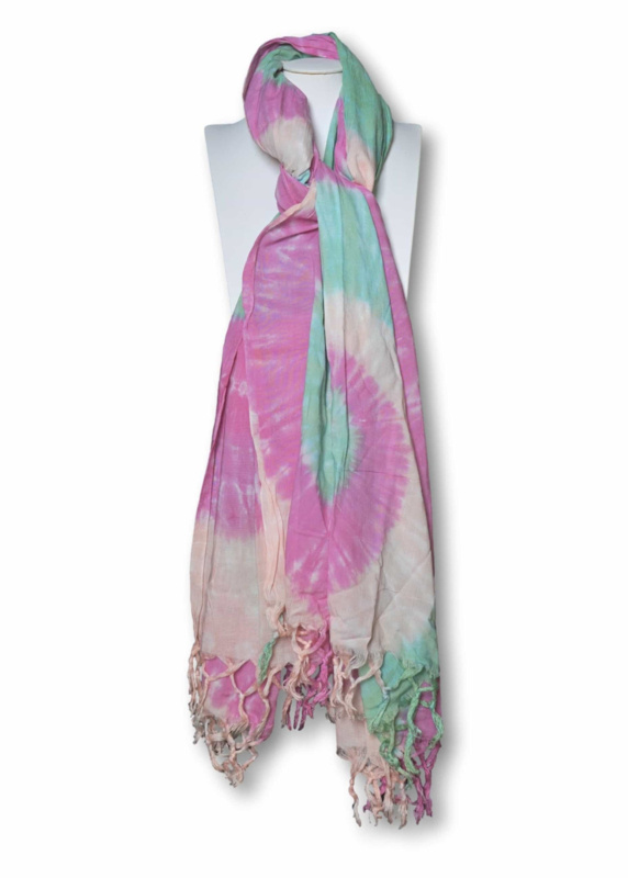 Voel de vrije geest van de zonovergoten Balearen met de sarong Ibiza – een dromerige mix van zachte roze en groene pasteltinten die rechtstreeks uit een boho-lookbook lijken te komen. Deze sarong ademt de relaxte sfeer van stranddagen, markten aan zee en zwoele zonsondergangen.