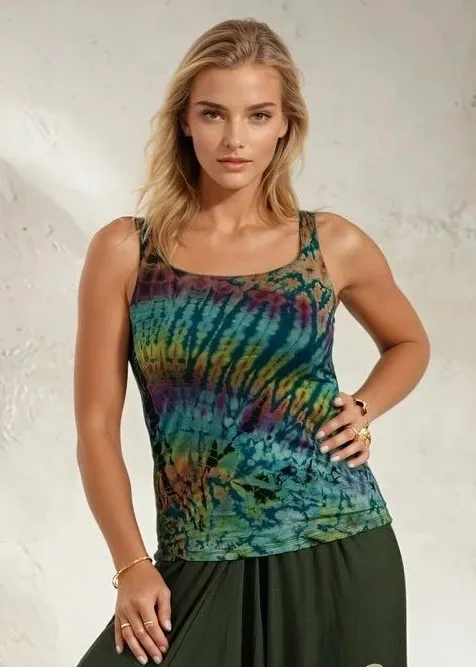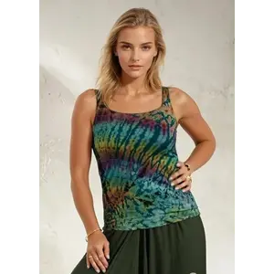 Deze dames top is ideaal voor de lente en zomer, maar ook perfect als kleurrijke laag onder een jasje in de koudere maanden. Of je nu gaat voor een relaxte look of iets meer opvallends, met deze tie-dye top maak je altijd een statement, of het nu op het festival of in de yogazaal is.